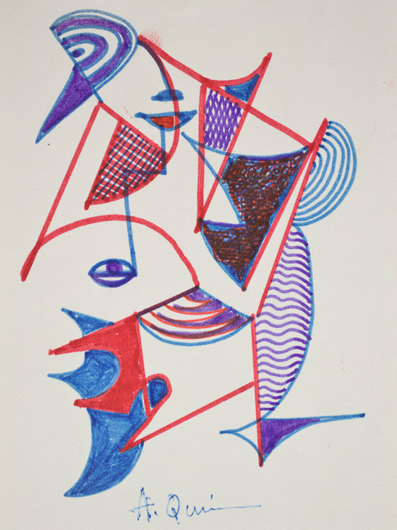 Untitled, Felt Tip pen on paper, Signed A. Quinn, 6 x 4 3/4 in.